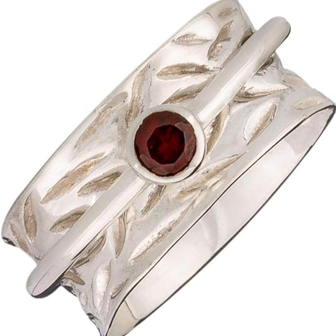 BASE Chakra 925 Silver Meditation Spinner Ring 5mm Faceted Round Garnet Focal Silver Spinner Band