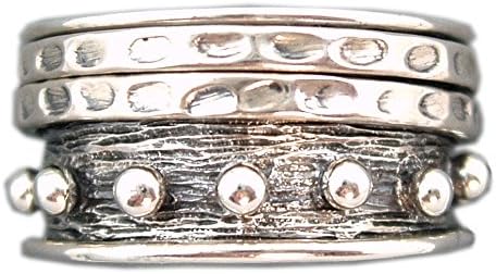 - Bali silver look with double spinners and reticulated beads edge. Antique finish in base ring and high polish on spinners.