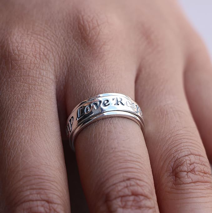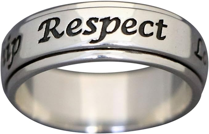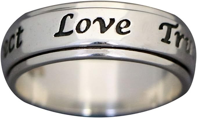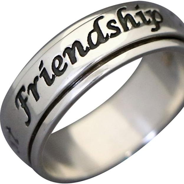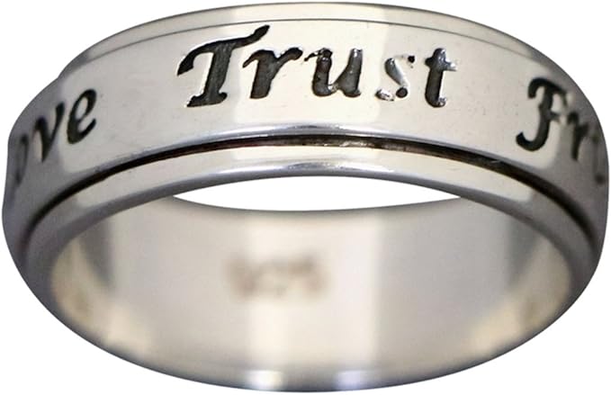 FRIENDSHIP 925 Silver Narrow Band Fidget Spinner Ring Trust Love Respect