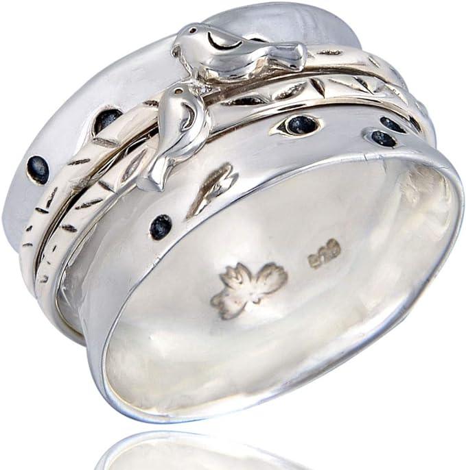 - ❁ PERFECT GIFT – Gift the LOVE BIRDS ring to show your love and devotion to a partner; gift the LOVE BIRDS ring to yourself as a reminder of what it means to stick through a true partnership. Our spinner ring is delivered to you ready to be gifted, complete with a charming magnetic ring box and a embossed silver cleaning cloth.
