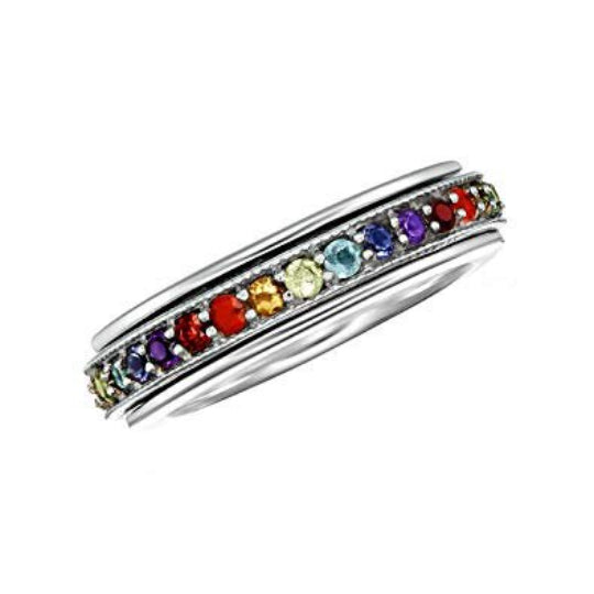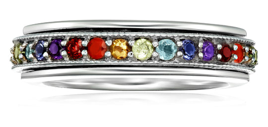 Energy Stone “SEVEN CHAKRAS” High Polish Sterling Silver Meditation Spinner Ring
