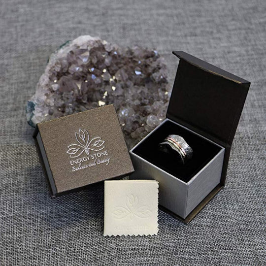 Because of the ring-over-ring design of our spinner rings, they are hard to be sized. As a result, Energy Stone makes each ring true to size with extra room to accommodate natural finger swelling throughout the day. For example, our size 7 rings are really 7 ¼, and our size 7 ½ rings are really 7 ¾, and soon. It all comes down to personal preference about how you like your ring to fit, but in our experience, many of our customers have told us that buying half a size up is a good idea for a wide-band style.
