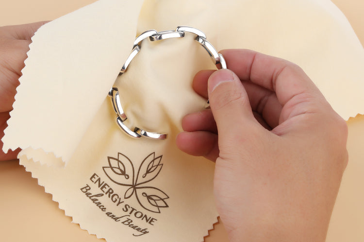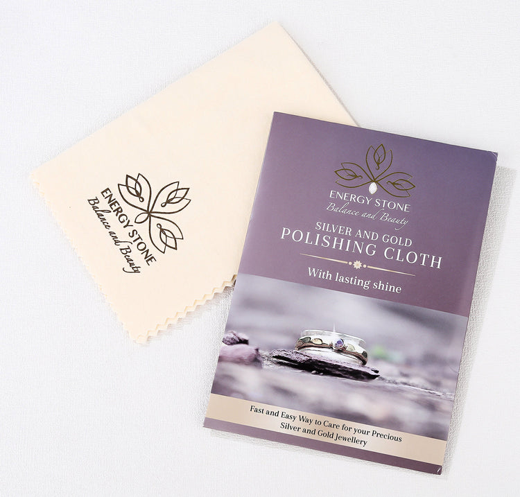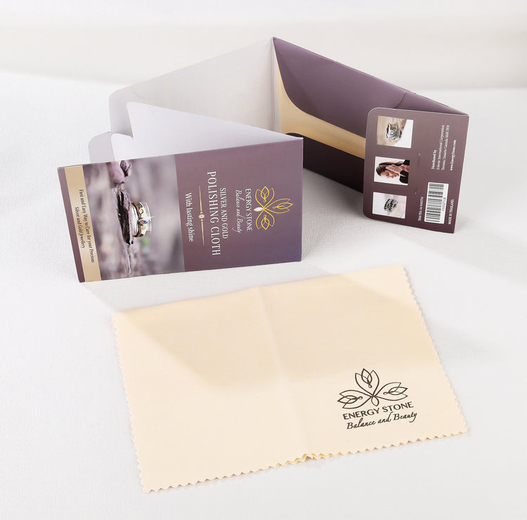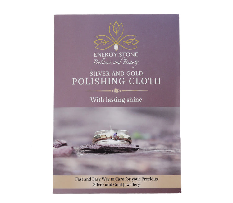 Energy Stone's SILVER and GOLD POLISHING CLOTH cleans and conditions your precious jewelry and silverware shiny and tarnish-free. It is infused with mineral oil and diatomaceous earth, a naturally occurring rock. These compounds have non-scratching micro-abrasive properties which removes tarnishes in seconds. In addition, it applies a lasting protective layer of anti-tarnish coat that rivals other cleaning products. Both sides of this 32cm x 22cm cloth is big enough to buff larger objects such as photo frame and silver ornaments. It's free from odor, and is easy to use. No need to dip your fingers in messy vinegar and soda, simply take it out of the packaging and wipe off tarnish straight away.