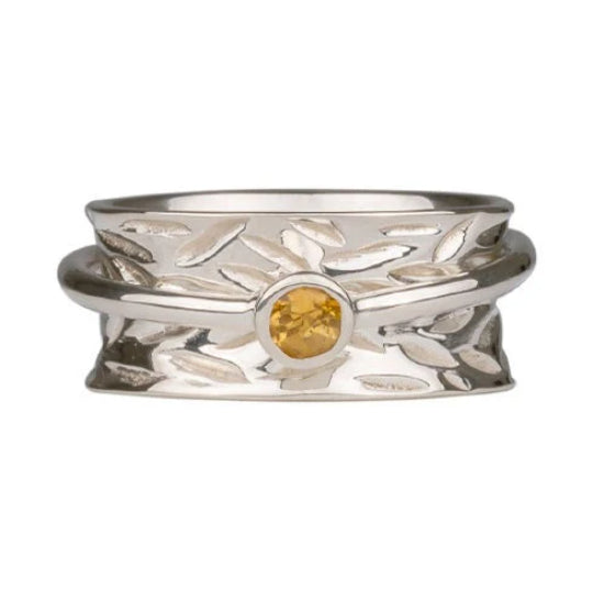 SOLAR PLEXUS Chakra 925 Silver Meditation Spinner Ring Faceted 5mm Round Honey Citrine Focal Spinner Band