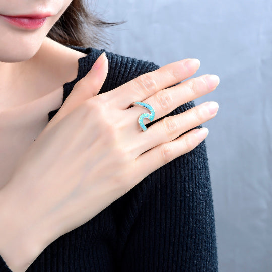 Energy Stone SWEET HEART Ocean Green Japanese Opalite Sterling Silver Stacking Ring