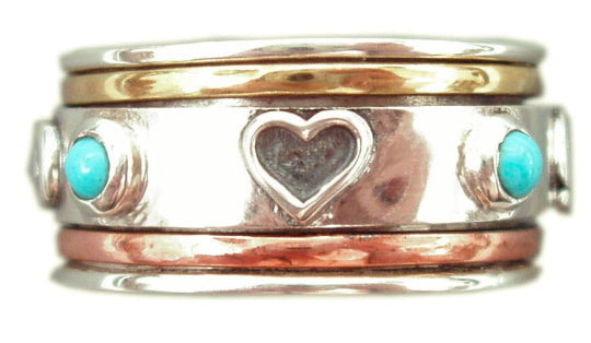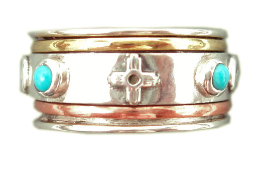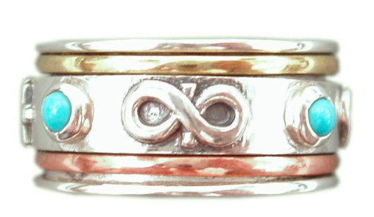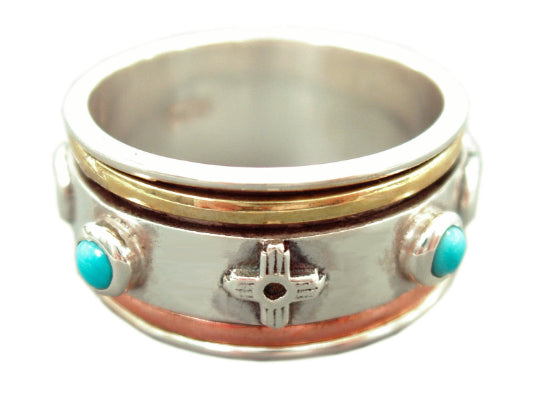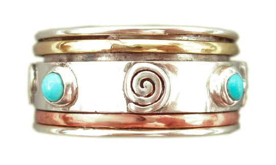 ZIA 925 Silver Fidget Spinner Ring Celebrate Different Cultures Turquoise Stone