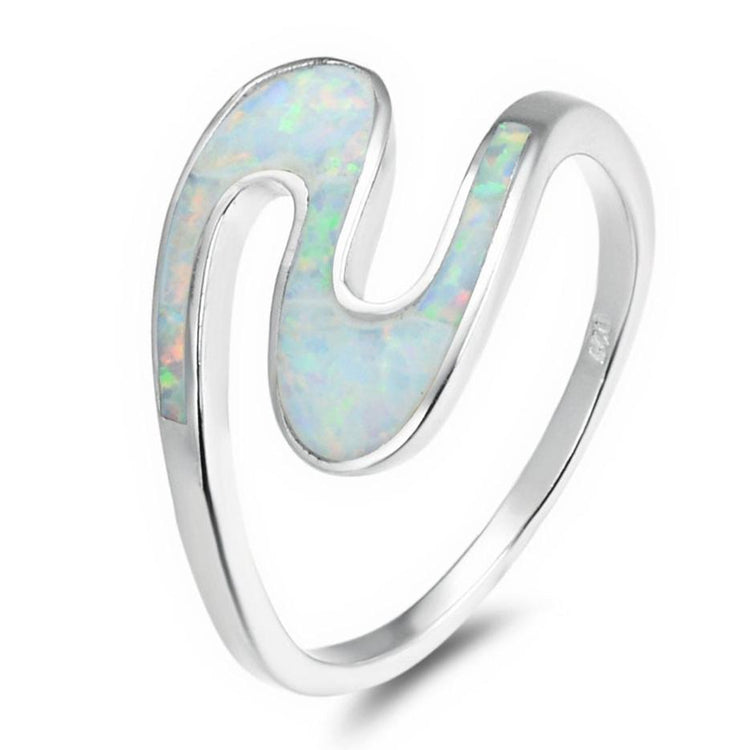 This dazzling "SWIRLY" stacking ring is inlaid with ocean green Japanese opalite in a high polish sterling silver band. The soothing ocean green opalite is so romantic. This soft color opalite fires off opalescent shimmers like real opal does. This ring shows off nicer in person than in pictures. A simple and stylish ring that can make a fashion statement! Wear this ring alone or in multiple! Create your own statement jewelry set -- the combinations are endless! This ring comes in a jewelry box ready for gift giving.