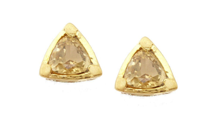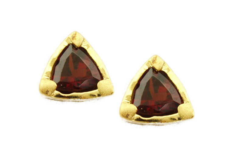 This is one of Energy Stone's very original design and it is classic! Bright and high quality trillium cut peridots are bead set into the vermeil frame. The special square bead setting is sandblasted to give a double-texture finish against the high polish frame. Each piece of the semi-previous stone used in making these stunning earrings are hand-picked for it’s color and shininess to make sure the stones have consistent color to form a pair of earring. The earring is 7mm long from one corner to another corner along the side and 4mm in thickness. The gem is a 6mm in trillium cut. The gold color of this earring is achieved by plating 3 microns of gold on 925 sterling silver. Three microns is a high standard when it comes to plating.