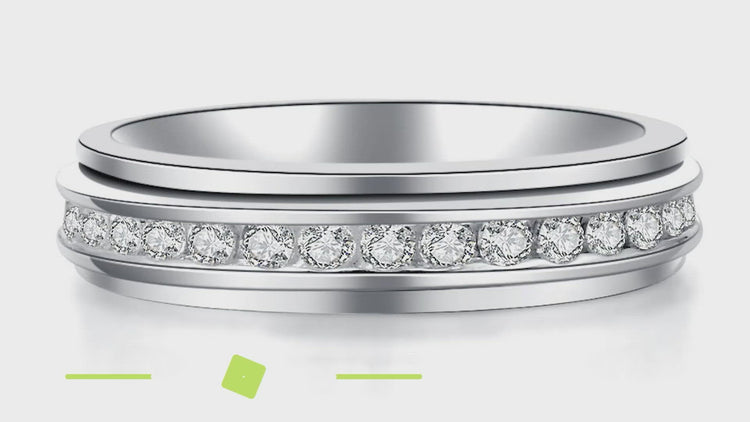 SUPERNOVA 925 Sterling Silver Spinner Ring Unisex Commitment Ring High Shine Cubic Zirconia Spinner Band