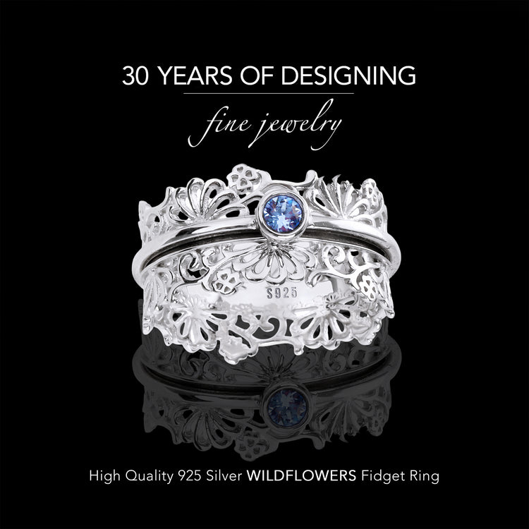 💍 STYLISH FIDGET SPINNER DESIGN – Beautifully crafted WILDFLOWERS in a lace pattern from 925 sterling silver. This spinner ring offers a discreet and fashionable way to fidget, helping you regain focus and calm throughout the day.