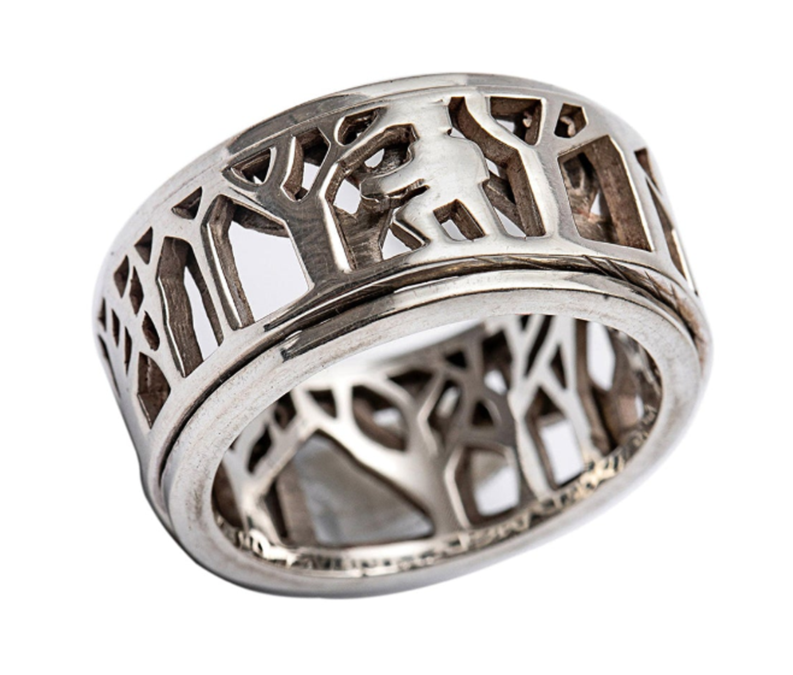 Immerse yourself in everything earth has to offer. We are meant to be outside in nature. This one-of-a-kind meditation spinner ring design reminds us of nature’s value. Embark on a journey of walking meditation to let your troubles melt away under the afternoon sun. As you spin the MAN IN NATURE spinner ring, the beautiful woman makes her way through the forest, while you bring your mind and body to a state of calm and happy focus.