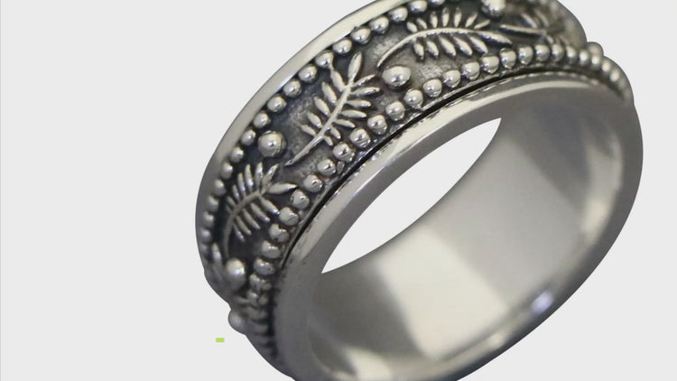 PALM LEAF 925 Silver Meditation Spinner Ring 3D Palm Leaf Spinner Band Spins Smoothly In Track